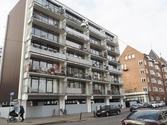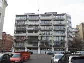 Byggeriet består af i alt syv etager, hvoraf de fem øverste benyttes til beboelse med to lejligheder per etage og anden etage til erhverv. Derudover er der parkeringskælder med tilsvarende parkeringsdæk i stuen med plads til 19 biler. På det flade tag er der etableret fyrrum og vaskerum og opholdsområde i form af tagterrasse. Bygningen er opført som jernbetonskeletbygning med støbte vægge, søjler, bjælker og plader samt trappe støbt på stedet. Mod nord er der i hele bygningens højde etableret en afskærmet spiraltrappe.