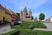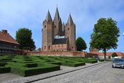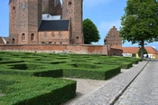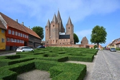 Parterreanlægget beliggende øst for Vor Frue Kirke i Kalundborg på Vor Frue Kirkes Plads er tegnet af landskabsarkitekterne C. Th. Sørensen og Ole Nørgaard 1952‑55.