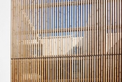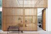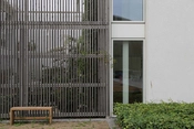 I designet har fokus været på privatsfære og en flydende adgang mellem ude og inde. I stueetagen er der panoramavinduer mod gårdhaven, i hele husets længde. Man kan åbne facaden i fuld højde så stue og gårdhave bliver et rum. Gårdhaven afskærmes mod gaden af et espalier udført i lærketræ.